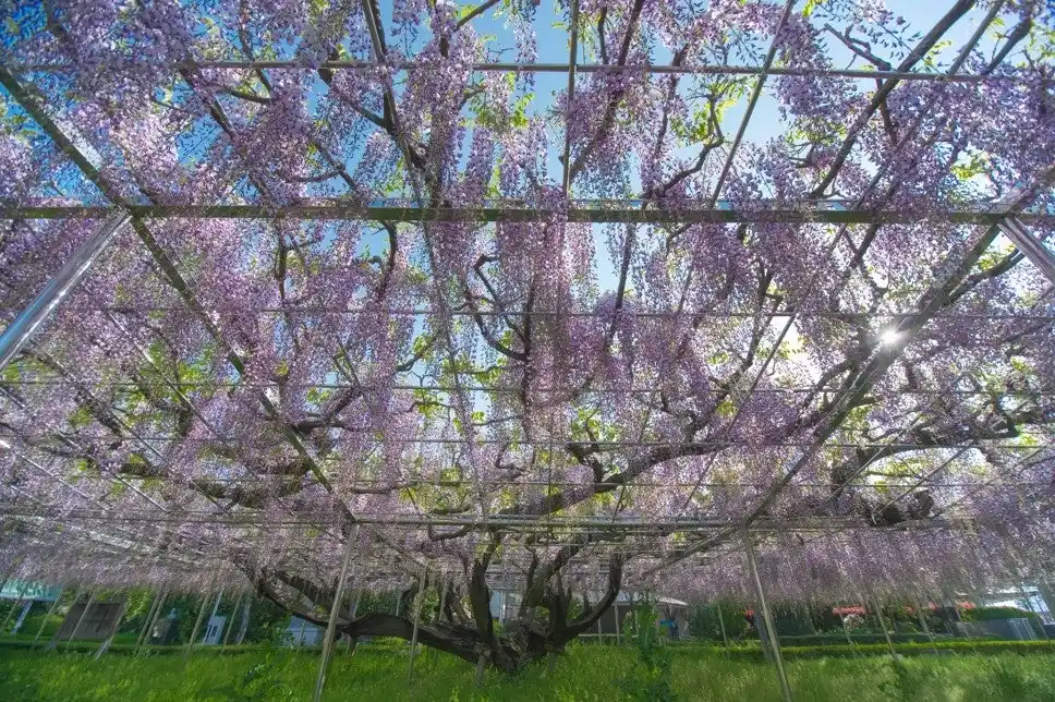 長い年月をかけて育まれた天然記念物の藤は、満開の時期になると優雅に咲き誇り、訪れる人々を魅了します。 |
