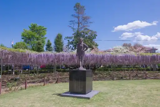 青葉園の象徴でもある「大藤」は、昭和28年3月に県天然記念物の指定を受け、昭和40年3月に青葉園に移植されました。開花シーズンには、近隣住民の方や、青葉園利用者のみならず、多数の方が訪れるフォトスポットになっています。 |