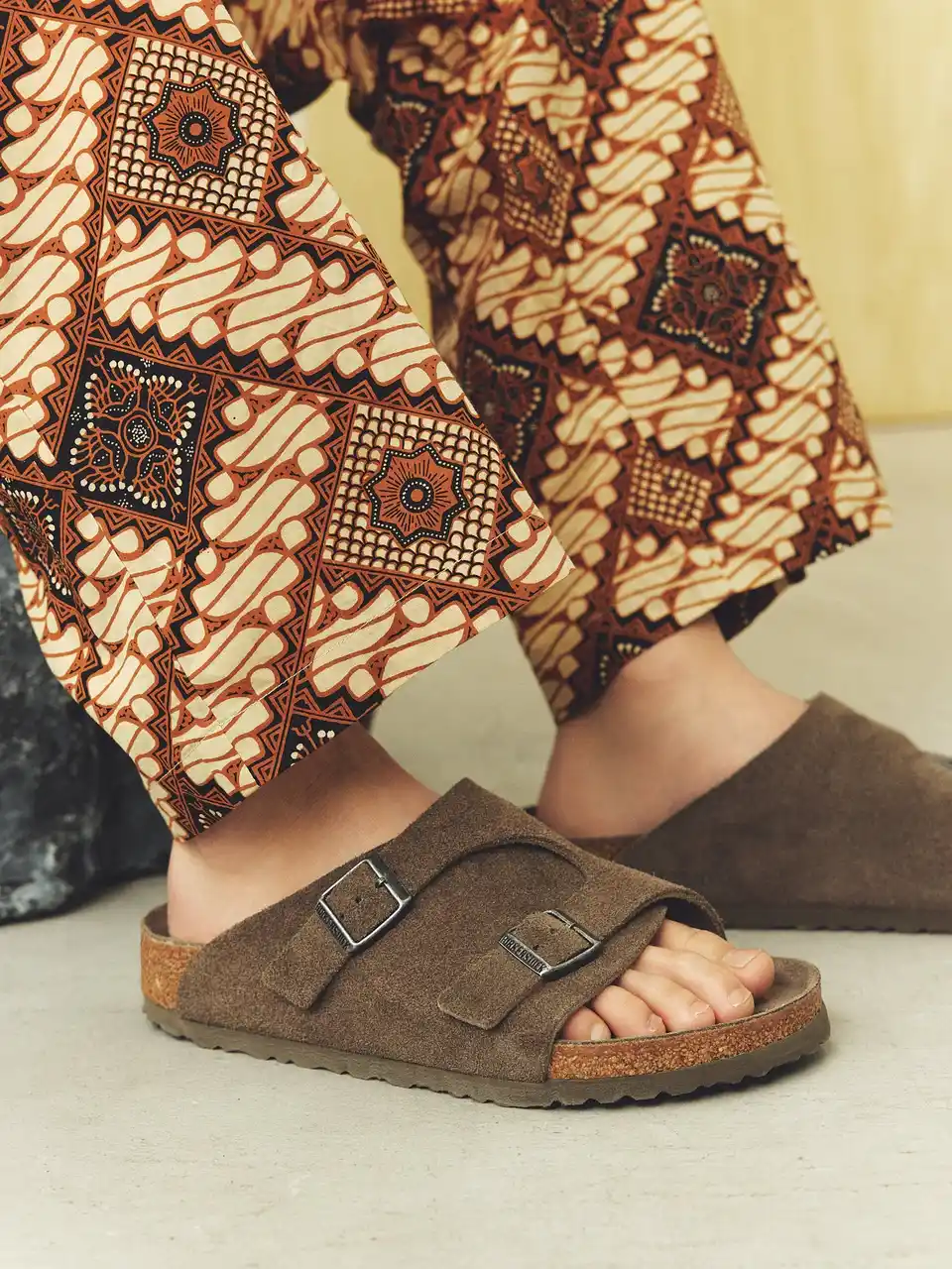 さらに、フットベッドライニングにはグレーのカラースウェードを継続採用。シーズンをまたいで 統一された仕様とすることで、別注モデルとしてのアイデンティティを強調しています。 ベースとなったのは、「BIRKENSTOCK」を代表するモデルZürich。1964年の誕生以来、60年以 上にわたり支持され続けてきたユニセックスサンダルで、甲を広く覆うアッパーに、ブルータリ ズムにインスパイアされたむき出しのコルクを合わせた、タイムレスなデザインが特徴です。