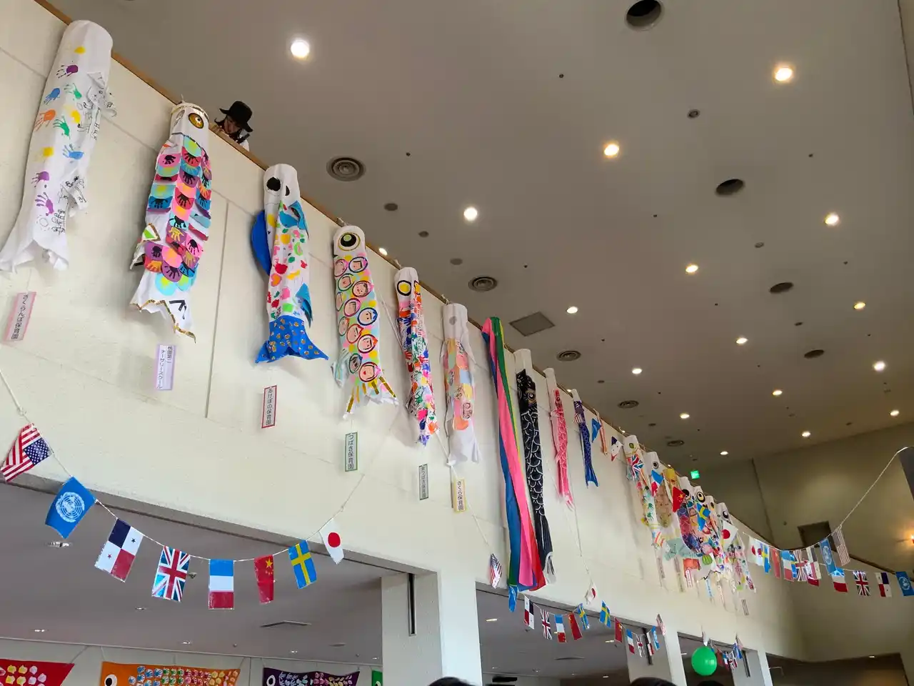 写真:深谷市内の保育園が制作した鯉のぼり展示 |