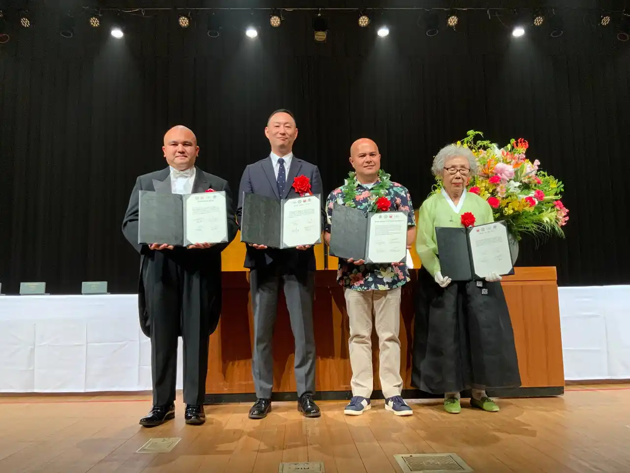 写真:姉妹友好協定を結んだ4団体(社会福祉法人深高会 NUBES児童合唱団 St.Paul Christian School セッピョル幼稚園 それぞれの代表者) |