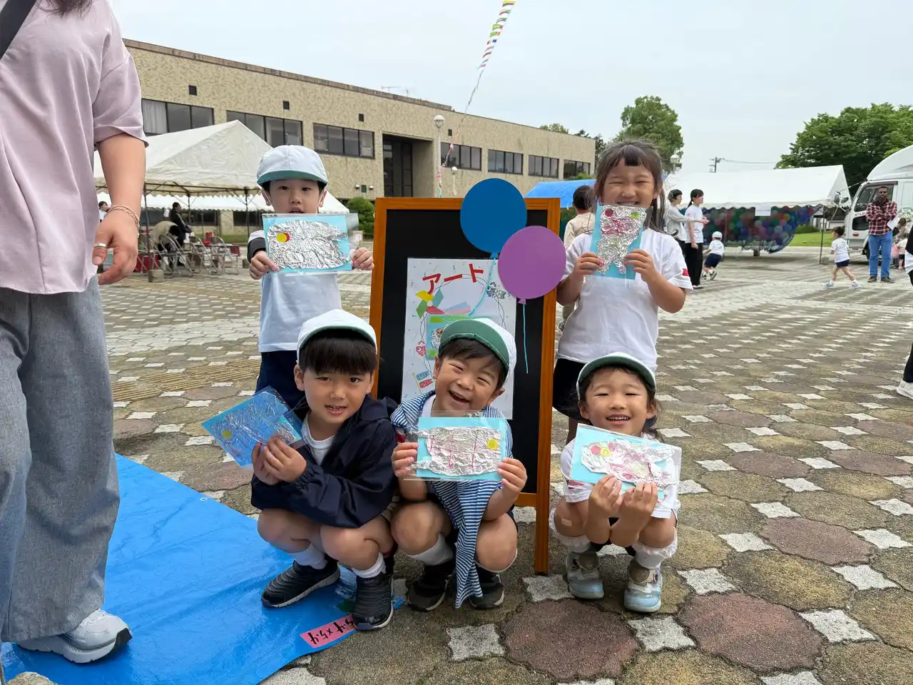 写真:アルミホイルを使用した鯉のぼり作りのブースも設置された |