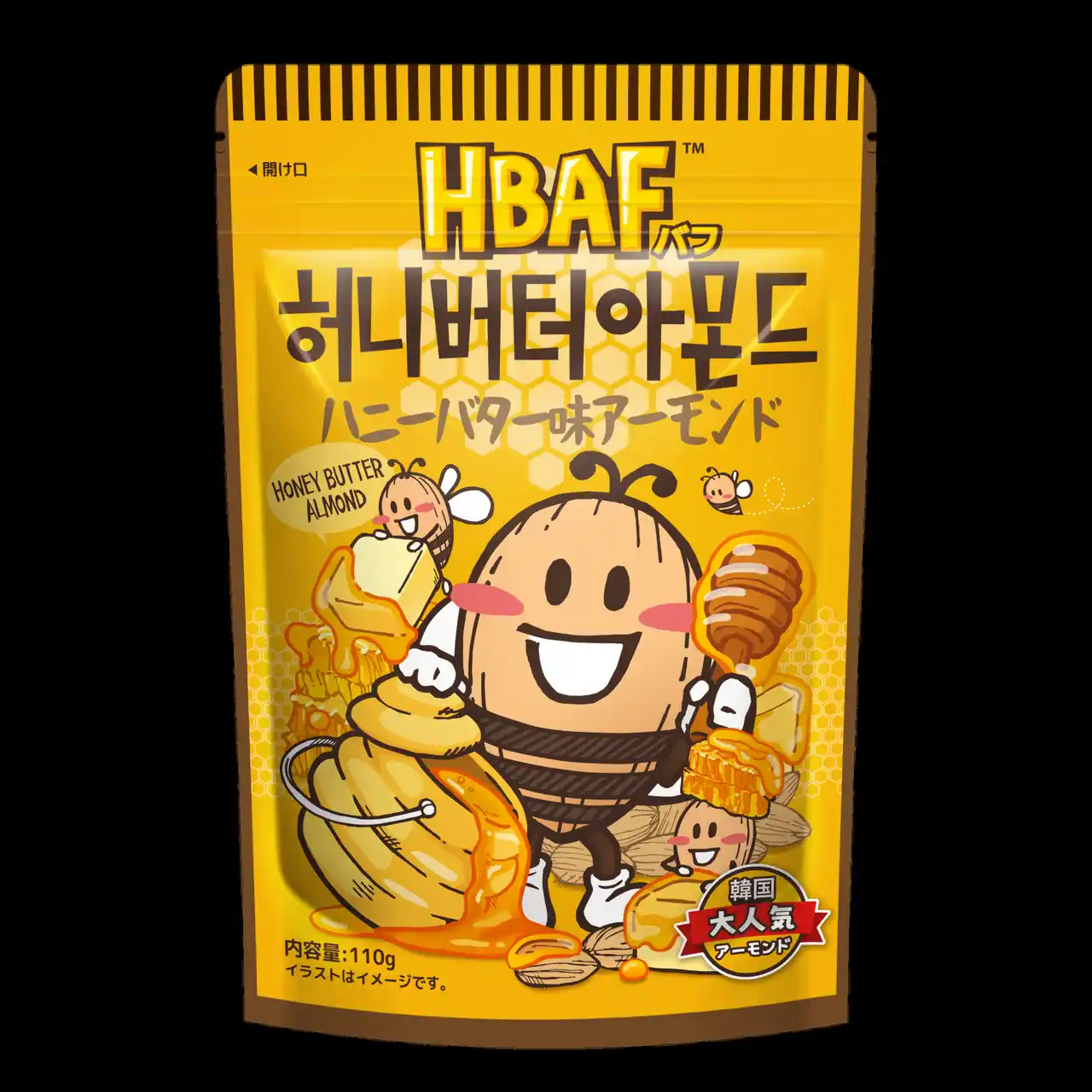 | 『HBAF』は Healthy But Awesome Flavors の略で、健康的でありながら、とびきり美味しい味を追求する韓国のアーモンドブランドです。今回コラボした商品は「ハニーバター味アーモンド」で、その絶妙な甘じょっぱさがクセになる味わいで、韓国の定番のお土産として大人気です。 | |||||||