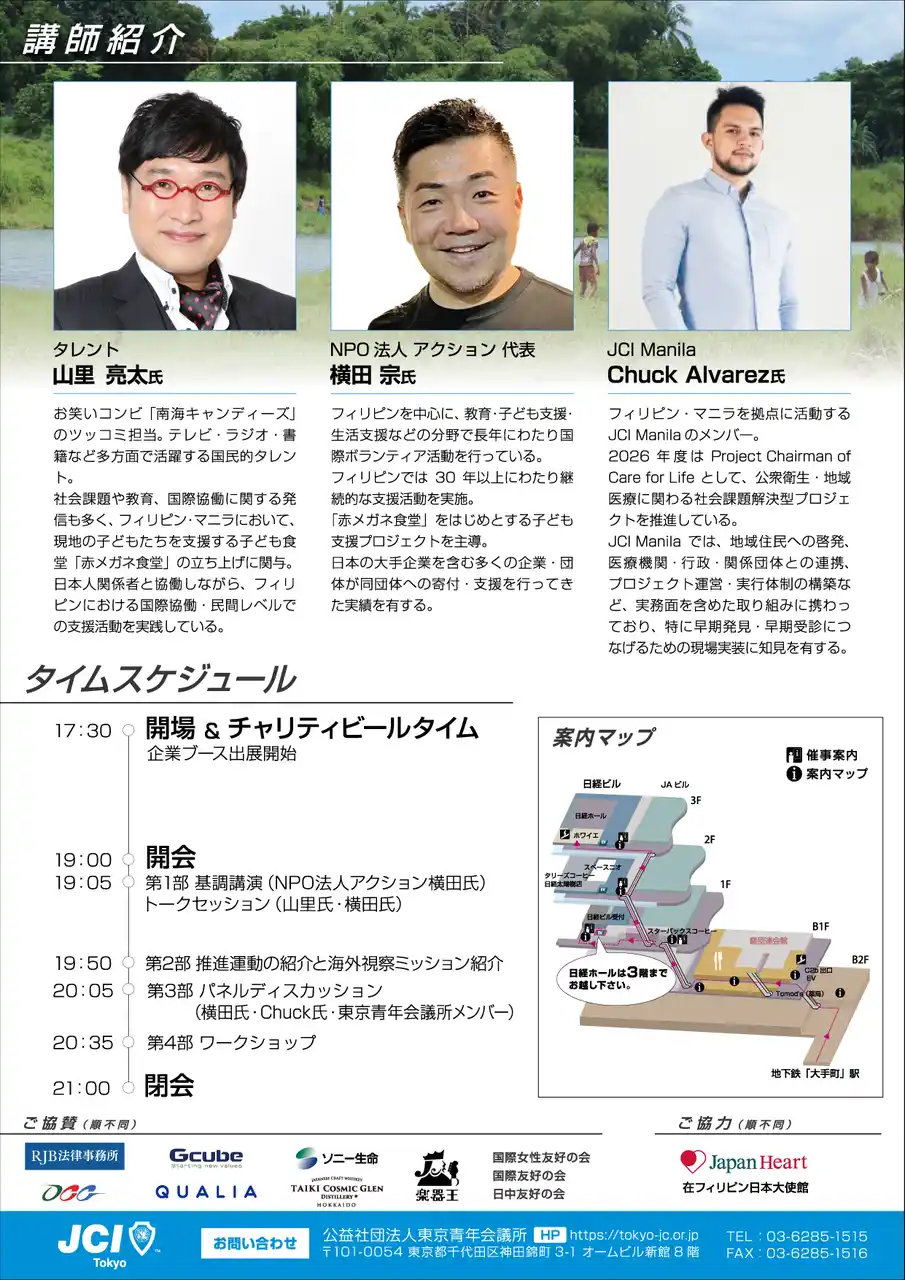 主催:公益社団法人東京青年会議所 共催:NPO法人アクション 主管:公益社団法人東京青年会議所 国際政策室 |