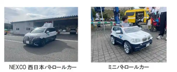 NEXCO西日本パトロールカーを展示します。 お子さま向けのミニパトロールカー試乗体験や、記念撮影もお楽しみいただけます。 |