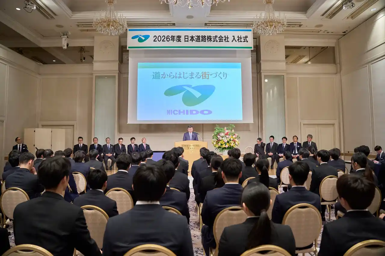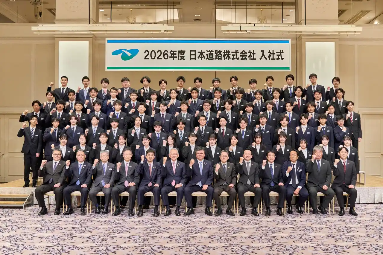 | 石井社長のあいさつでは、「『道路』は、社会にとって決して欠かすことのできない基盤であり、皆さんがこれから携わるのは、『人々の当たり前の日常』と『安全・安心』を守る、非常に責任があり、そして誇り高い仕事であることを、ぜひ胸に刻んでほしい。」とエールを送りました。 | |||||||||