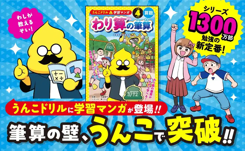 株式会社文響社(代表取締役社長:山本周嗣)は、2026年4月9日に、小学生が学校の勉強でつまずきやすい単元をマンガで楽しく学べる新シリーズ「うんこドリル学習マンガ」より、『うんこドリル学習マンガ かけ算の筆算 小学3年生 算数』『うんこドリル学習マンガ わり算の筆算 小学4年生 算数』2冊を全国の書店およびオンラインストアにて発売いたします。 |