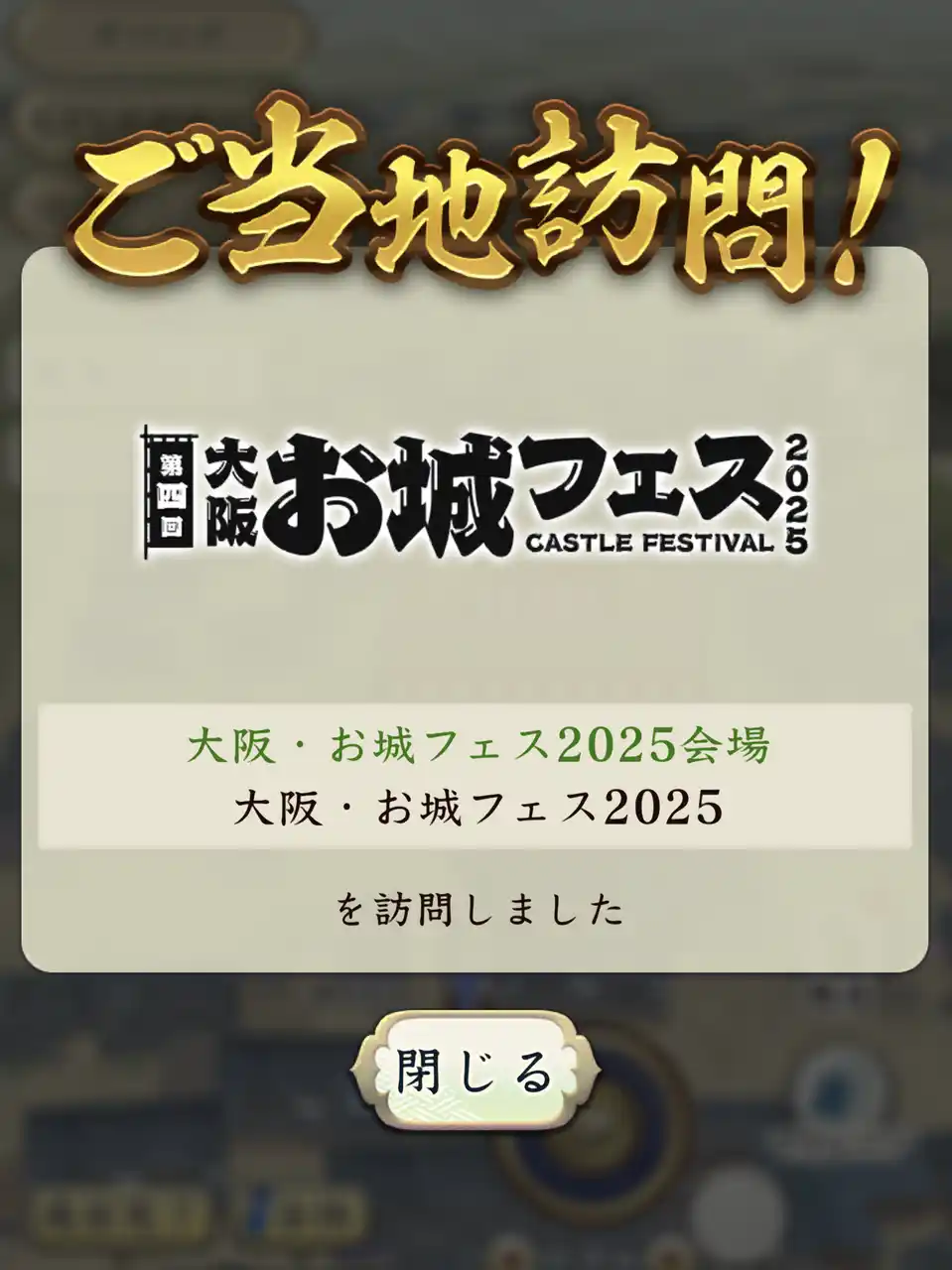ご当地イベント「大阪・お城フェス2025」のパネルミッション完全達成画面をご提示ください。 |