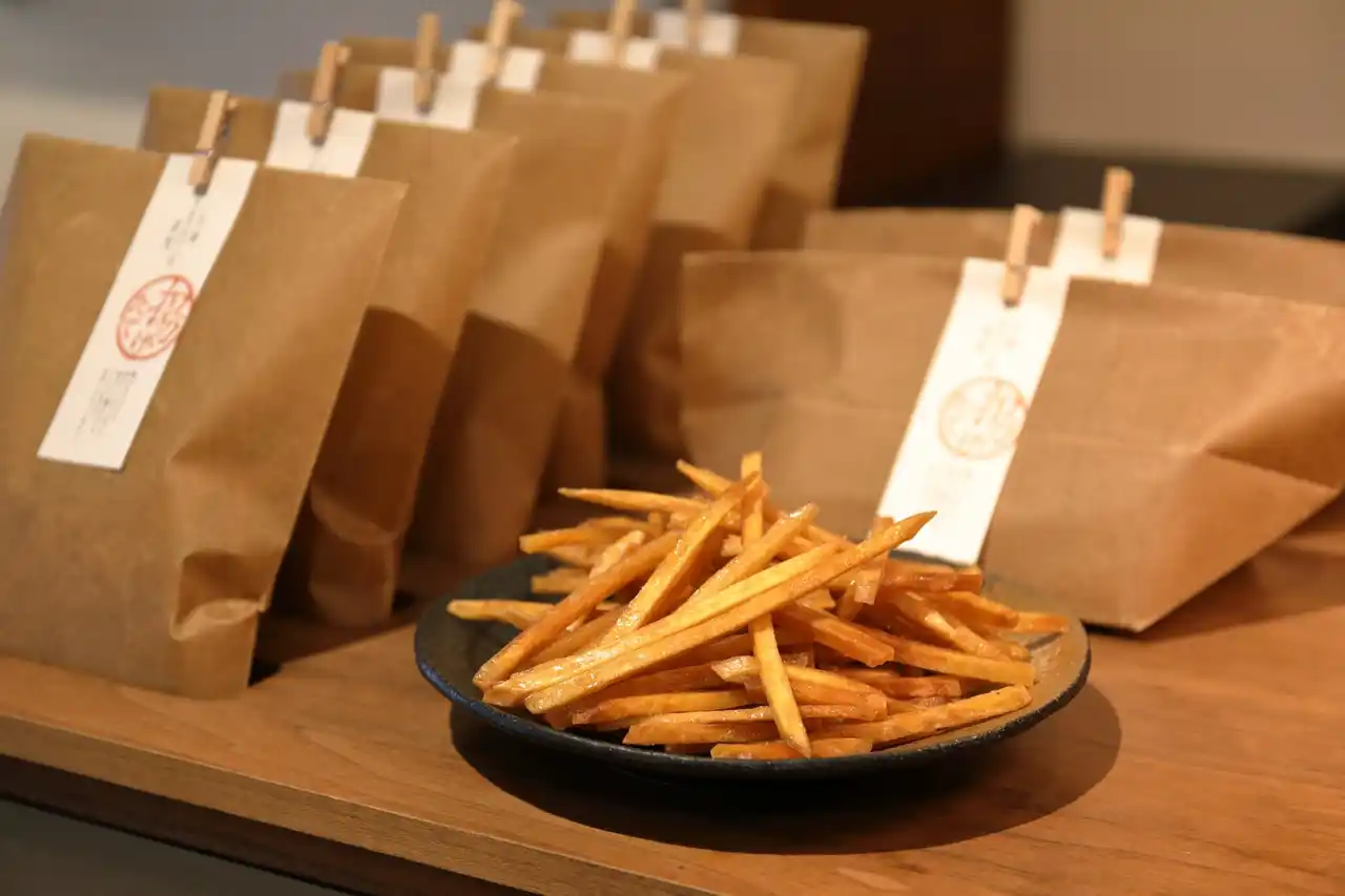 芋屋金次郎は、ワンランク上のフレッシュな芋けんぴをお届けする芋菓子専門店として2005年に日高本店を開業しました。現在、四国を中心に、東京、大阪、福岡、そして韓国などで店舗を運営しています。芋けんぴは芋と油と砂糖だけでつくるシンプルな菓子ゆえに、原料のおいしさや鮮度がそのまま正直に出てしまいます。だからこそ、芋屋金次郎の芋けんぴは芋づくりから始まります。自社農場での栽培も行いながら、南九州、北海道の契約農家さんと一緒に土づくりから取り組んでいます。大切に育てたサツマイモは、収穫後翌日までに工場へ運び、その日のうちに1次加工まで行うことで鮮度を閉じ込めます。 |