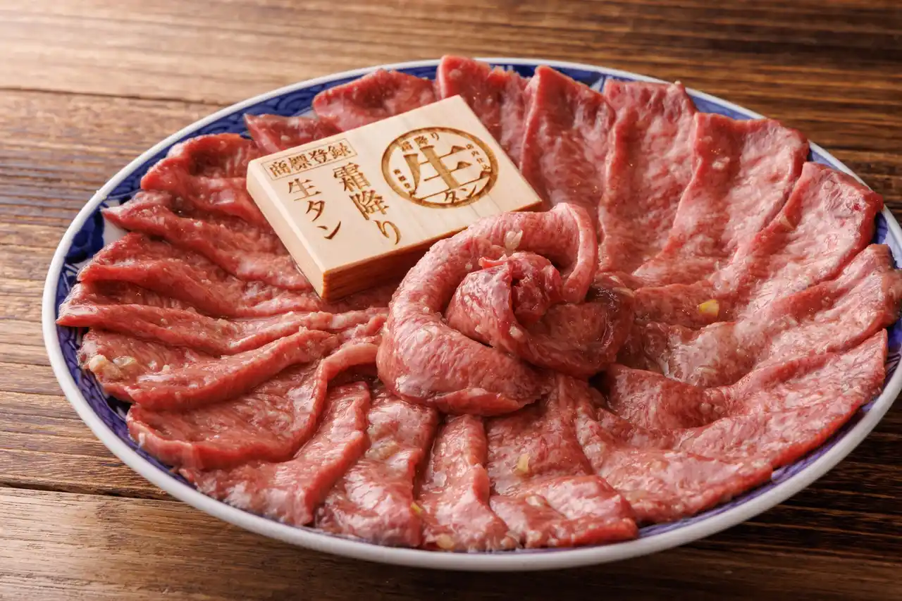 ●名物「商標登録 霜降り生タン」と「黒毛和牛A5カルビ」 |