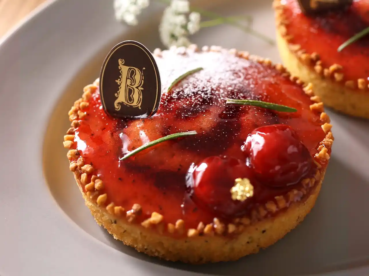 上品なベルガモットの香りが広がるアールグレイ生地に、甘酸っぱいチェリーを合わせた新作のガトー・ナンテ。キルシュ香るチェリーのコンポートやコンフィチュールの甘酸っぱい果実の味わいが華やかに広がります。 |