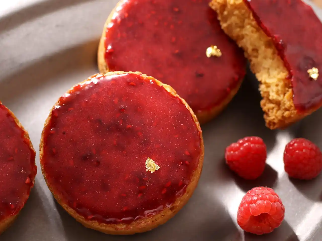 ブルトンヌのスペシャリテである発酵バターの豊かな風味が広がる“ガレット・ブルトンヌ”に、甘酸っぱいフランボワーズのコンフィチュールとアイシングを添えて仕上げました。紅茶と合わせてお楽しみいただきたい、華やかで贅沢な美味しさです。 |