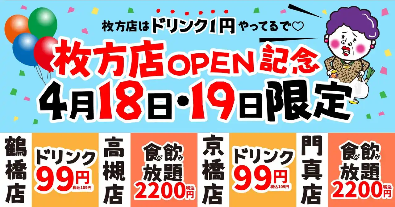 ~オープン記念で主役の「枚方店」は1円キャンペーンを開催中!~