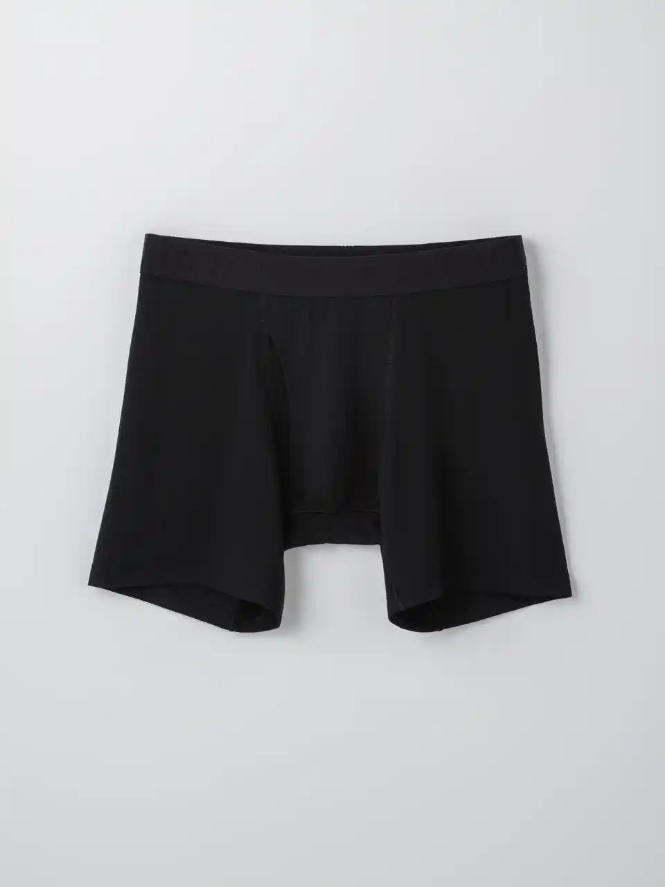 定番アイテムのロングボクサーパンツに加えてスタンダードな丈のボクサーパンツをラインアップしました。さらっと心地よく着られる吸水速乾性で汗をかいても乾きやすく、ムレにくいのが特⾧です。 |