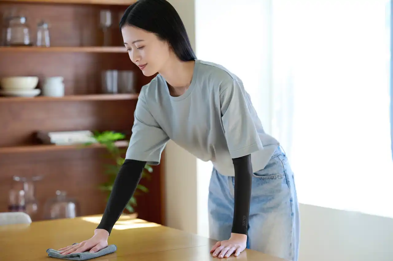 アイマスクと腕用のサポーターを新発売します※。アイマスクはスマートフォンやデスクワークで酷使した目もとにアプローチ、遮光率99.9%で外からの視覚刺激をしっかり遮断します。腕用のサポーターはUV カット99.9%で、日焼け対策としても活躍します。 |