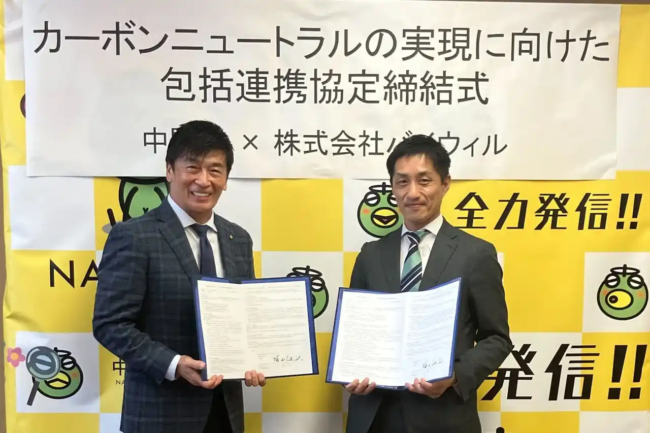 「GXをやりたくなる世界」を目指し、環境価値を活用した経済循環を推進する株式会社バイウィル(本社:東京都中央区、代表取締役社長:下村 雄一郎、以下「バイウィル」)は、福岡県中間市(市長:福田 健次、以下「中間市」)と環境価値に関する連携協定を締結しました。 |