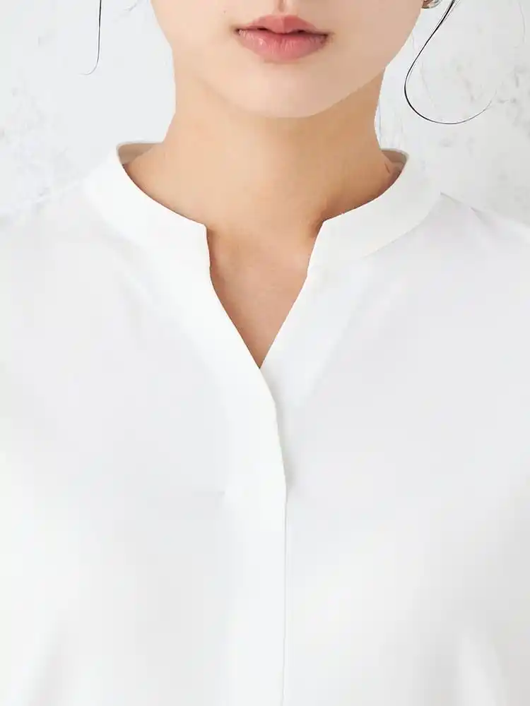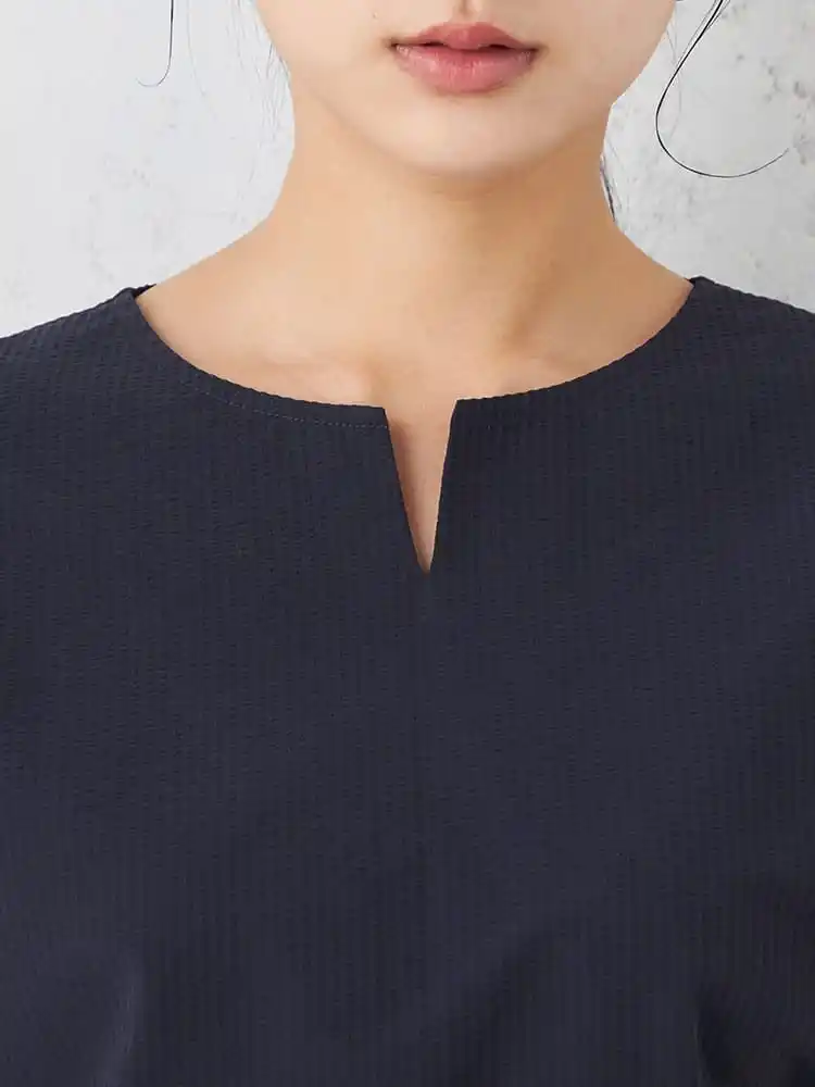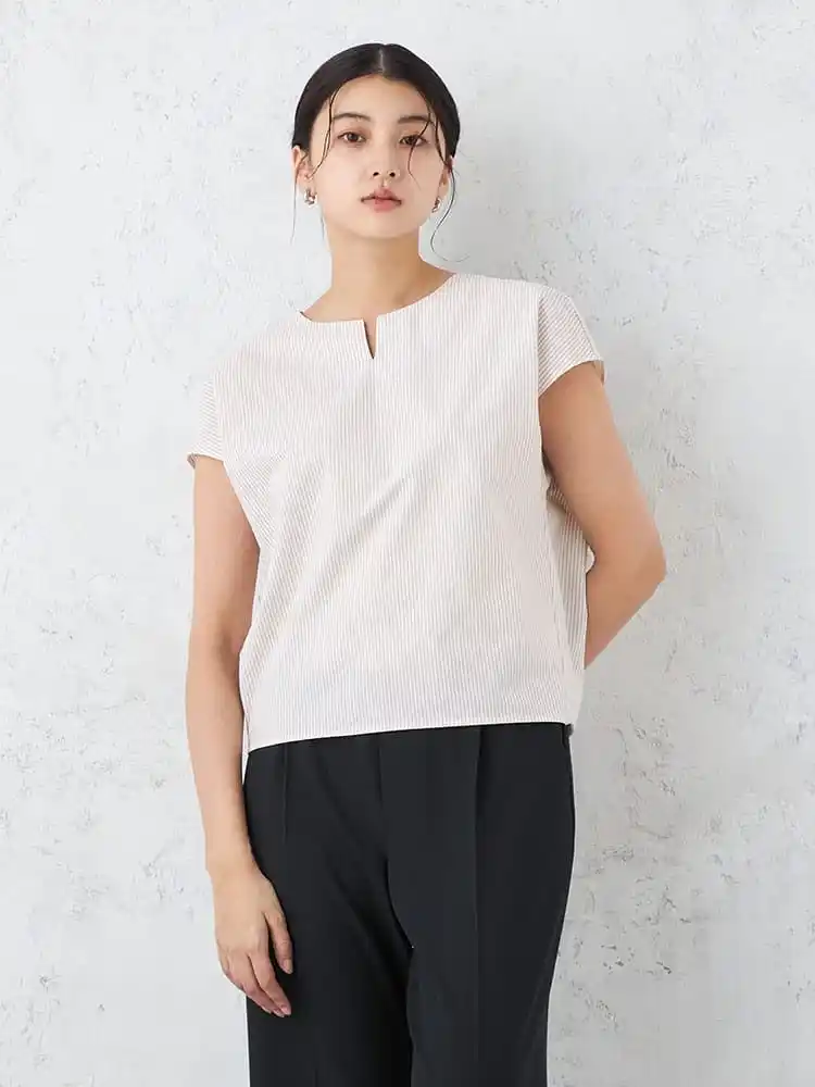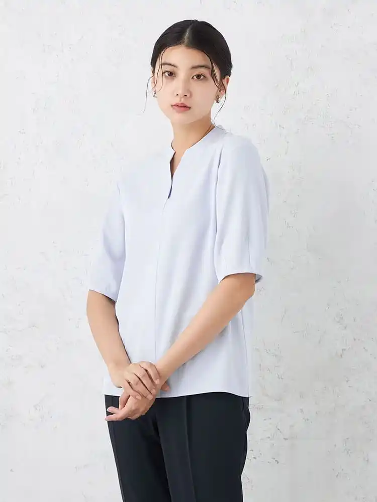 大人の上品さと快適性を追求「キーネック半袖ブラウス」 |