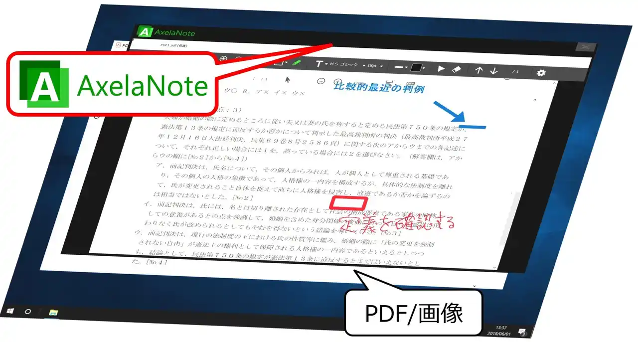 | AxelaNoteは、PDFや画像の原本を保持したまま別レイヤー上に注記や対応履歴を記録する仕組みにより、原本保全と確認作業を両立させ、紙とデジタルが混在する業務の効率化と履歴管理を支援します。 | |||