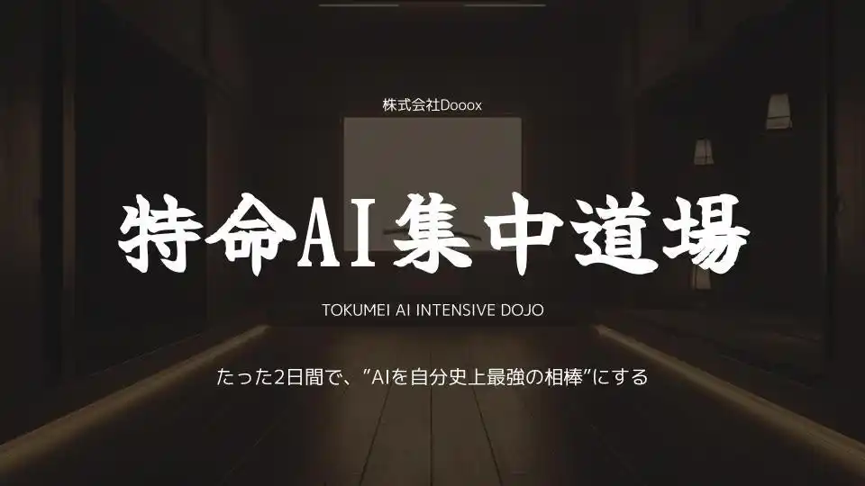 『緊急ではないけれど、重要な課題』について、企業経営者に伴走する特命社長室を展開する株式会社Dooox(本社:東京都品川区、代表:久保寺亮介/以下「当社」)は、2026年4月より、企業の経営者・経営層を対象とした短期凝縮型AI研修プログラム「特命AI集中道場」を開始いたします 。 |