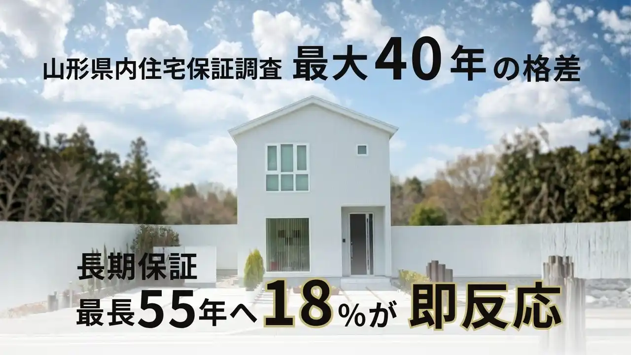 山形県内の住宅会社15社を対象とした独自調査結果。最大40年の「保証格差」と、最長55年保証への高い関心が浮き彫りに。 |