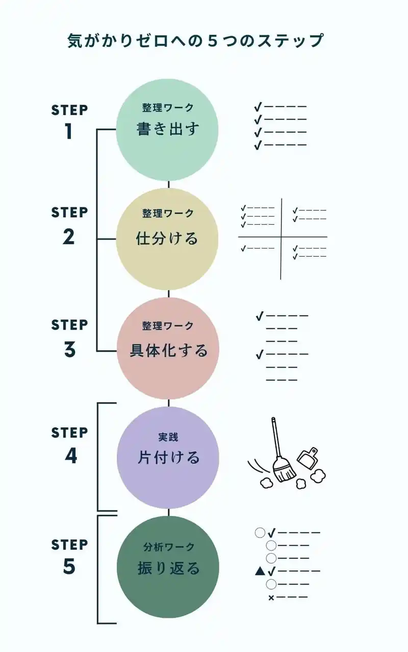 | 本書では、仕事や生活における未完了のタスクだけでなく、過去の心残りや将来への不安、興味はあるが行動に移せていないテーマなど、私たちの頭の中に散在するあらゆる思考や感情を「気がかり」として整理します。 | |||||||||