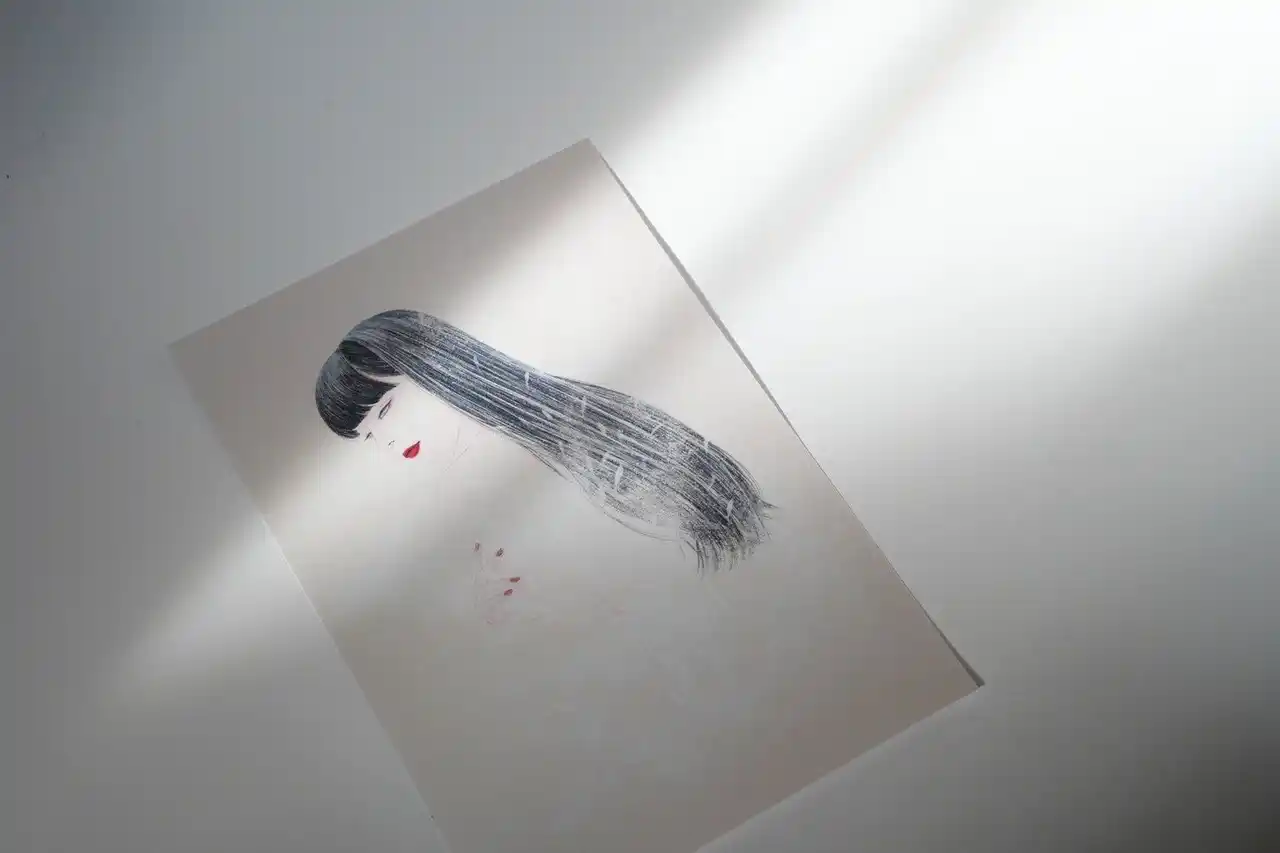 新進気鋭の日本画家、丁子紅子(ちょうじべにこ)氏が「湯もち」のやわらかさへの衝撃と心地よい柚子の香りからインスピレーションを受け、描いた作品『香りと、』。「湯もち」という菓銘の由来である【箱根温泉の湯あがりのやわはだのような、なめらかな口どけの御菓子】が作品に落とし込まれました。 |