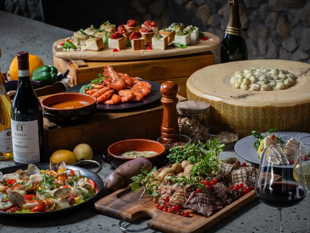 BBQと多彩な料理に加え、パルミジャーノ・レッジャーノの器で仕上げる一皿など、ライブ感あふれるデモンストレーションを展開。出来立ての美味しさをその場で楽しめます。 |