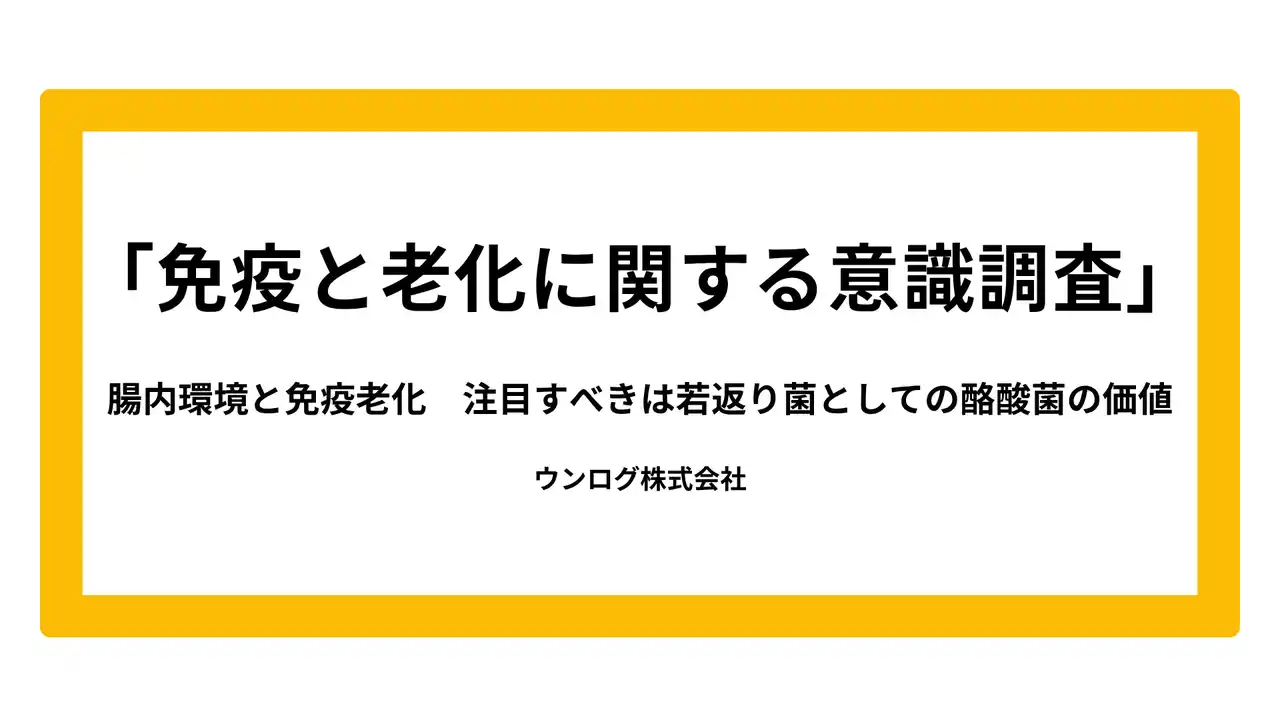日本最大級の観便・腸活サポートアプリ「ウンログ」を運営するウンログ株式会社は、腸内細菌学研究の第一人者である京都府立医科大学大学院医学研究科 生体免疫栄養学講座 教授、消化器内科学 特任教授の内藤裕二先生監修のもと、30代から加速する「免疫老化」への正しい理解を深め、効率的な健康管理を提案するべく、全国の20~40代の男女950名を対象に「免疫と老化に関する意識調査」を実施しました。 |