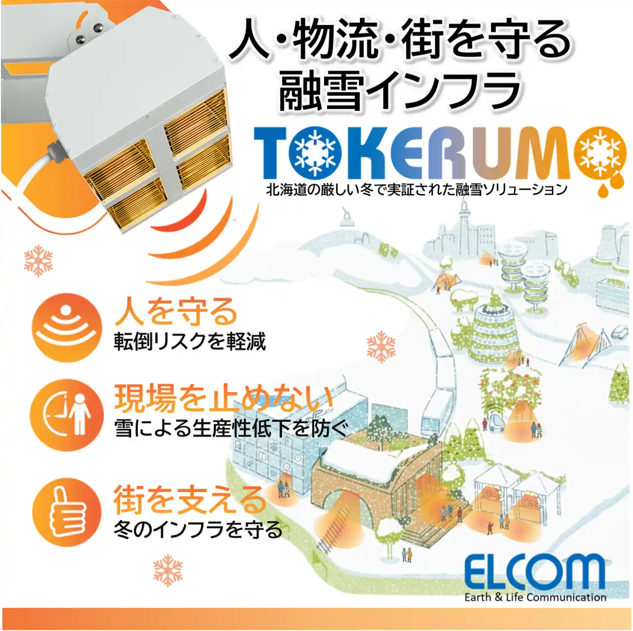 株式会社エルコム(本社:北海道札幌市北区、代表取締役:相馬 嵩央)は、このたび、当社が開発した「遠赤外線融雪装置TOKERUMO(解けルモ)」が、国土交通省の新技術情報提供システム(NETIS)に登録されたことを公表しました(技術名称:遠赤外線融雪装置/登録番号:HR-250018-A)。 |