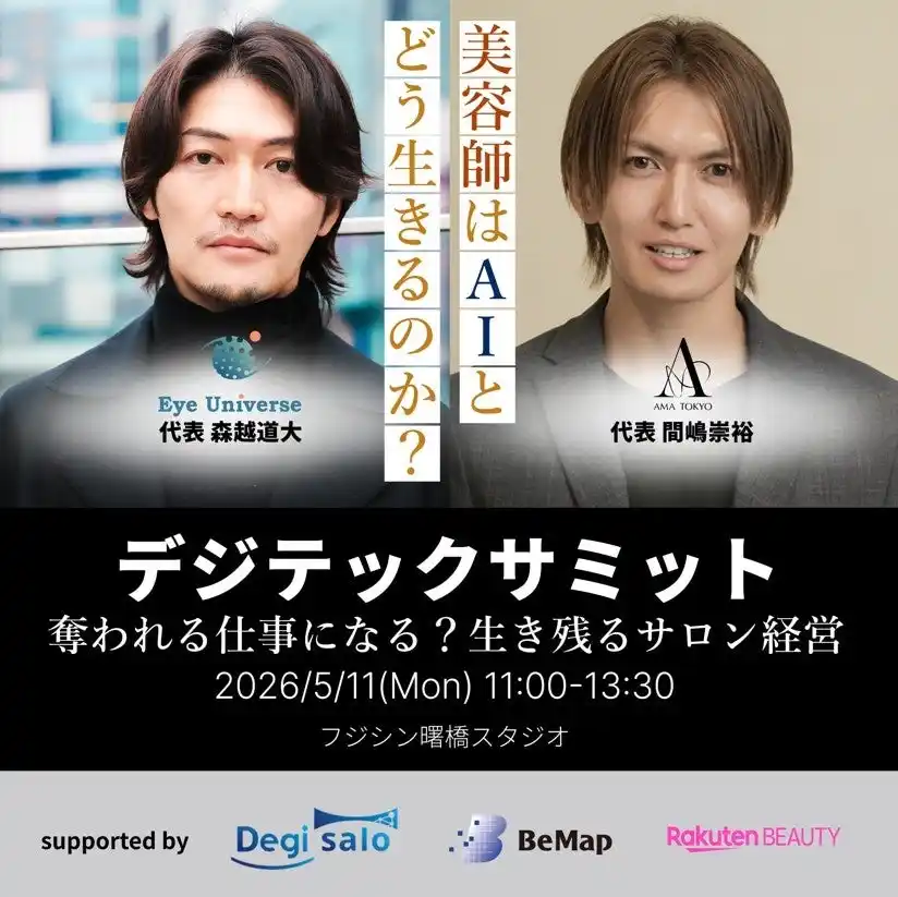 デジタルサロン協会は、2023年7月7日設立。美容師・サロン・メーカー・ディーラーなど業界全体をデジタルでつなぐハブ機関です。「AI時代に誰も置いていかない」をスローガンに、AI活用による顧客体験向上を追求してきた株式会社Eye Universeの知見を背景に、先端技術を現場で使いやすい形に落とし込む活動を展開しています。 |