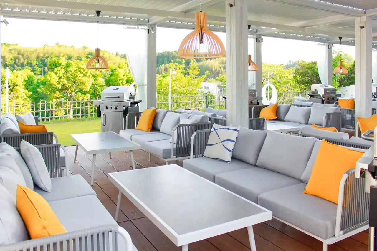 | 全席アメリカンガスグリルを備え、ソファー席とテーブル席の2タイプのBBQエリア。3種の手ぶらBBQプラン・持ち込みプランを展開しています。 | ||||||||