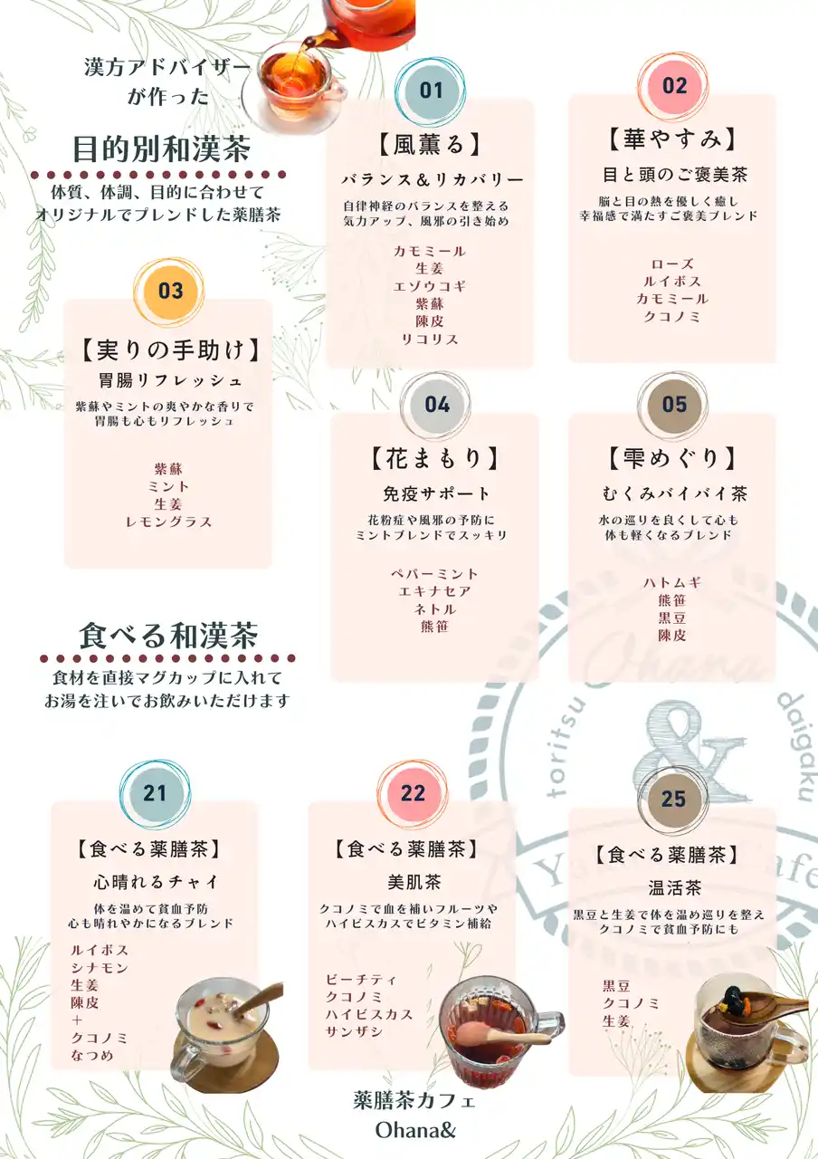 | 1.体調チェックから選べる“体験型”薬膳茶カフェ | |||