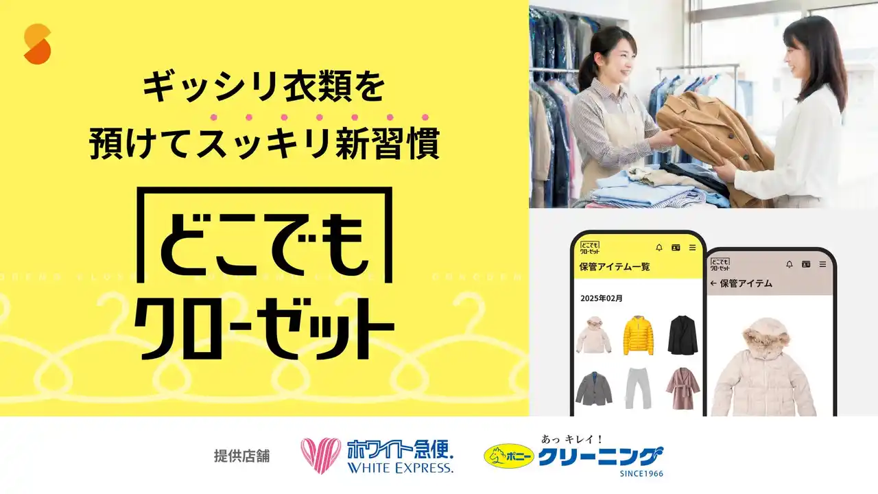 株式会社サマリー(本社:東京都千代田区、代表取締役:日下部康介)は、衣替えシーズンを前に、クリーニング店舗を起点とした衣類保管サービス「どこでもクローゼット」(略称:どこクロ)の展開を開始しました。ホワイト急便およびポニークリーニングと協業し、2026年4月時点で東京・神奈川・千葉・栃木の計144店舗で展開しています。