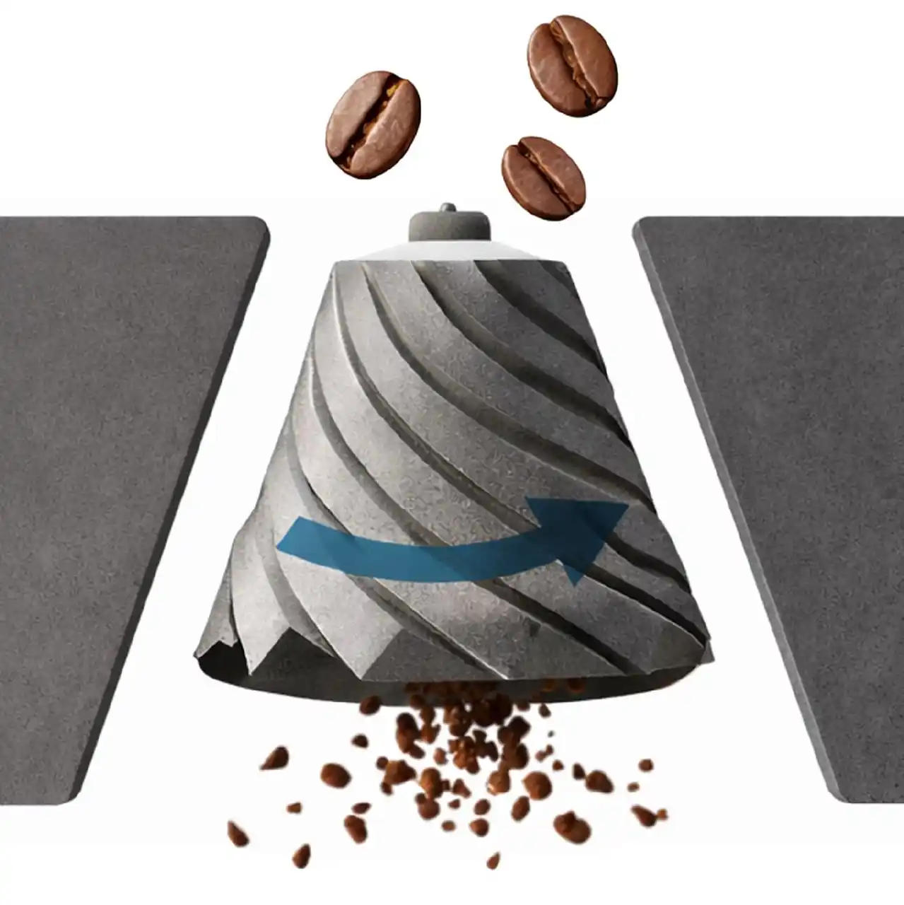 固定された刃と円錐状の回転刃で豆をすり潰す「コニカル式ミル」を採用しています。 |