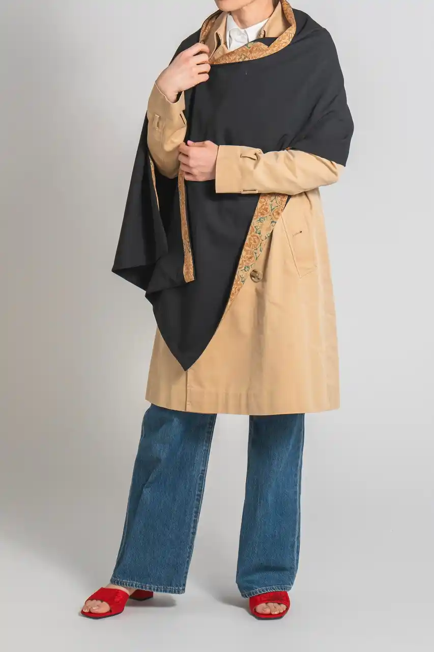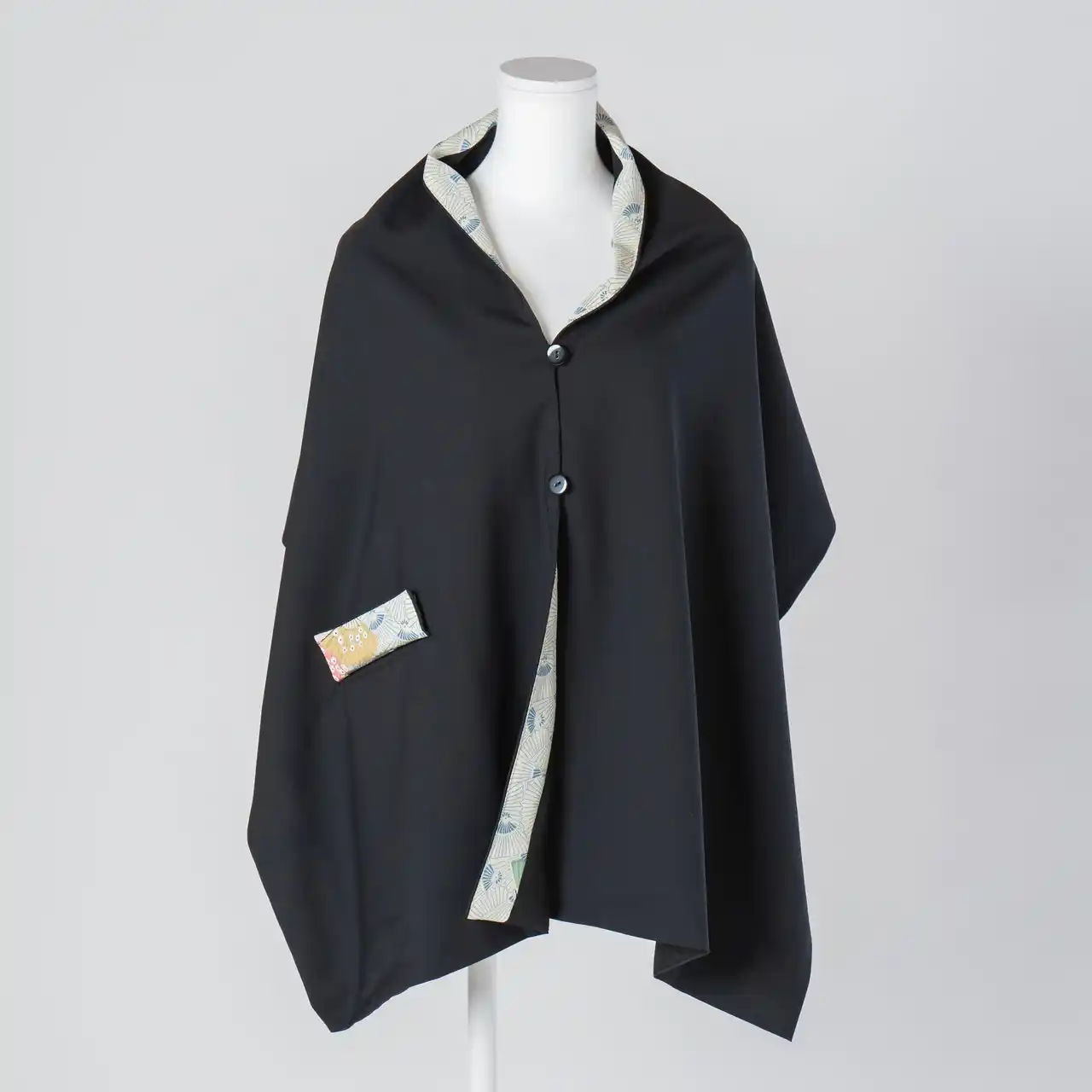 さらに、Relier81に初登場となるストールも展開。ベーシックカラーの生地に、伝統の黒染めシルク着物をさり気なくあしらい、華やかなコーディネートを演出します。シーズンレスで活躍し、ボタン付きで多彩なアレンジが可能。ユニセックス仕様で、ご自身用にはもちろんギフトにも最適です。 |