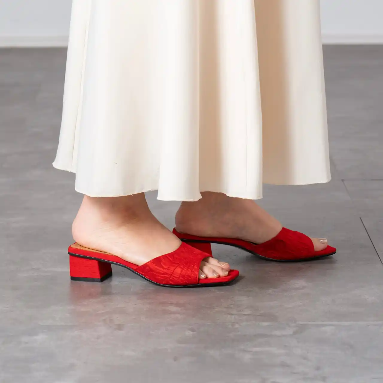 Relier81の定番である洗練されたスクエアデザインはそのままに、より多くの方にフィットするバランスに。スタイリッシュなフォルムは足元を美しく見せながら、安定感のある履き心地。シーンを選ばない万能な一足。 |