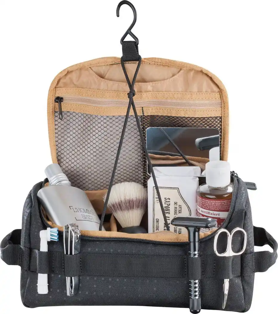 洗面用具や細かな荷物を整理できるトラベルポーチ。 内部構造により、必要なものをすぐに取り出せる設計です。 |