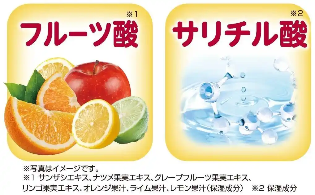 *² ライム果汁、オレンジ果汁、レモン果汁、リンゴ果実エキス、サンザシエキス、ナツメ果実エキス、グレープフルーツ果実エキス(すべて保湿成分) |
