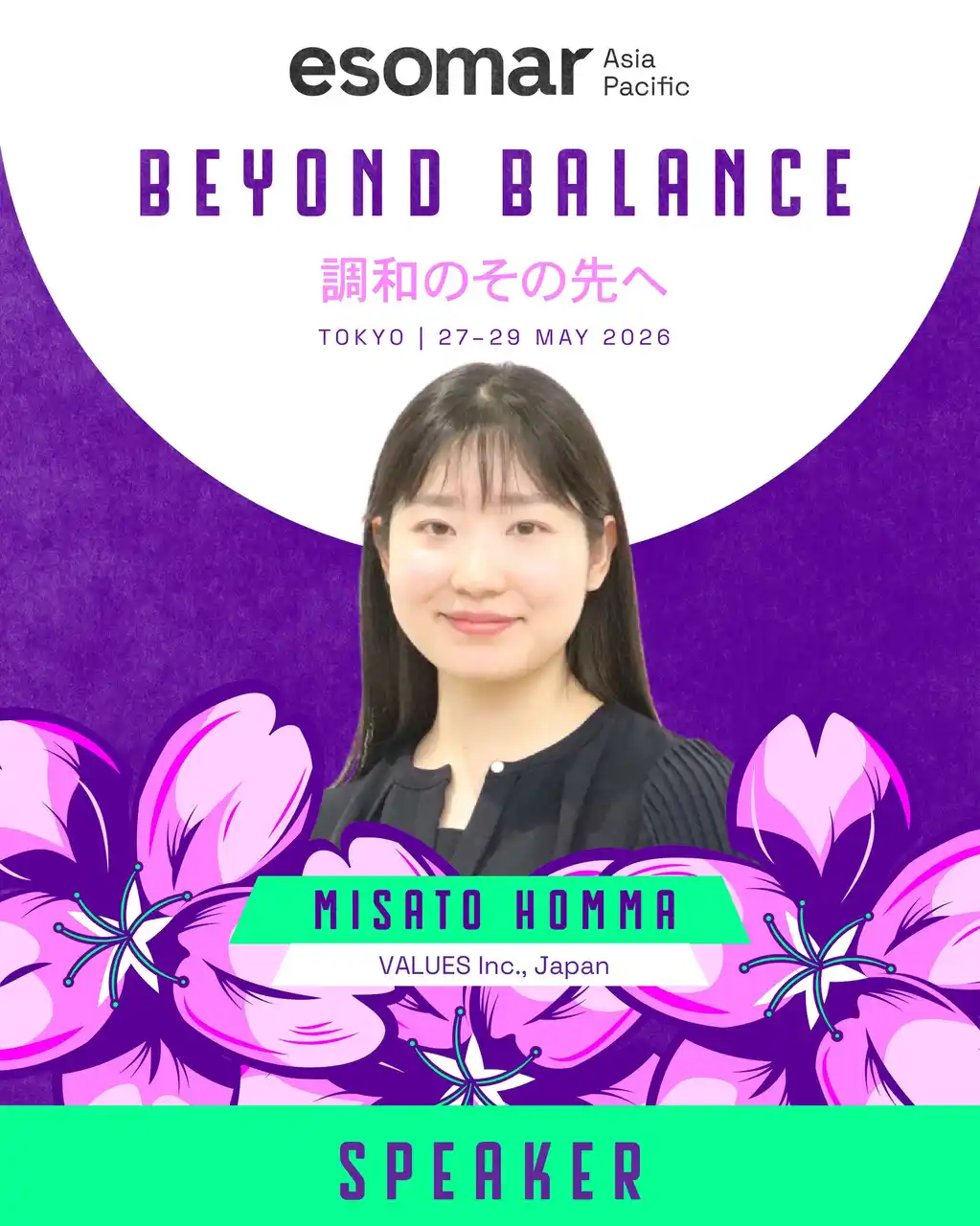 | ESOMAR(European Society for Opinion and Marketing Research)は、130か国以上が参加するデータ分析とリサーチのグローバルコミュニティで、市場調査とデータ分析の分野で世界的に最も権威ある国際組織の一つです。そのアジア太平洋地域最大のイベントである「ESOMAR Asia Pacific 2026」は、2026年5月27日から29日の3日間、「Beyond Balance」をテーマに東京で開催されます。 | |||||||||