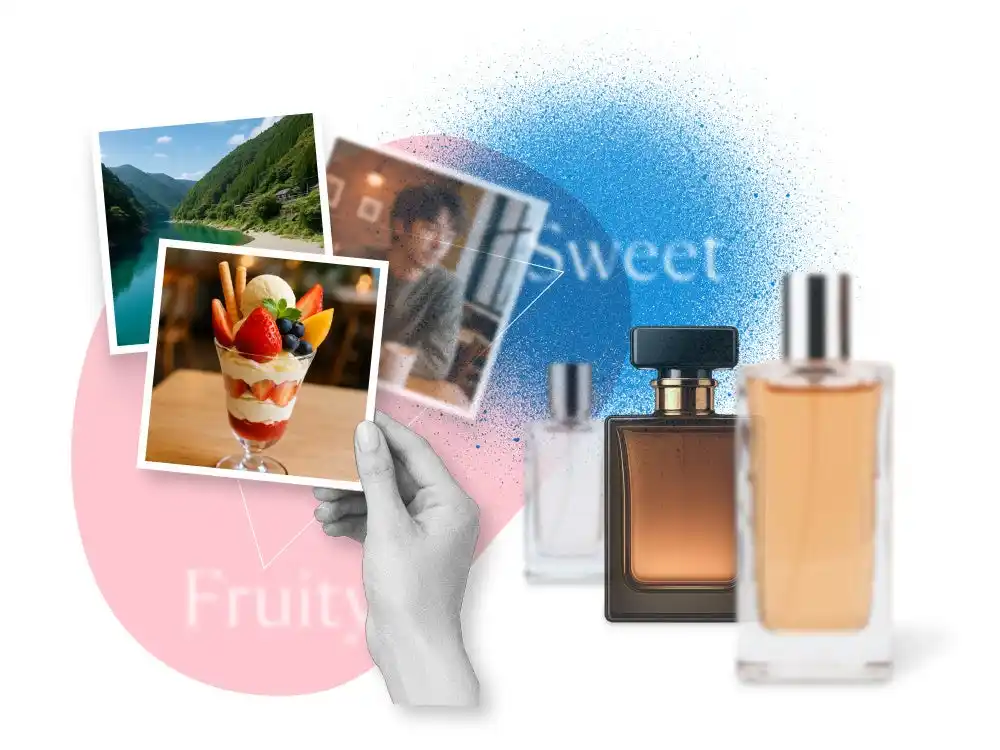 あなたの好きなものや、大切な思い出。スマートフォンの中にあるお気に入りの一枚を選ぶと、AIがその印象や世界観を読み解き、あなたの感性に沿った香りを提案します。 |