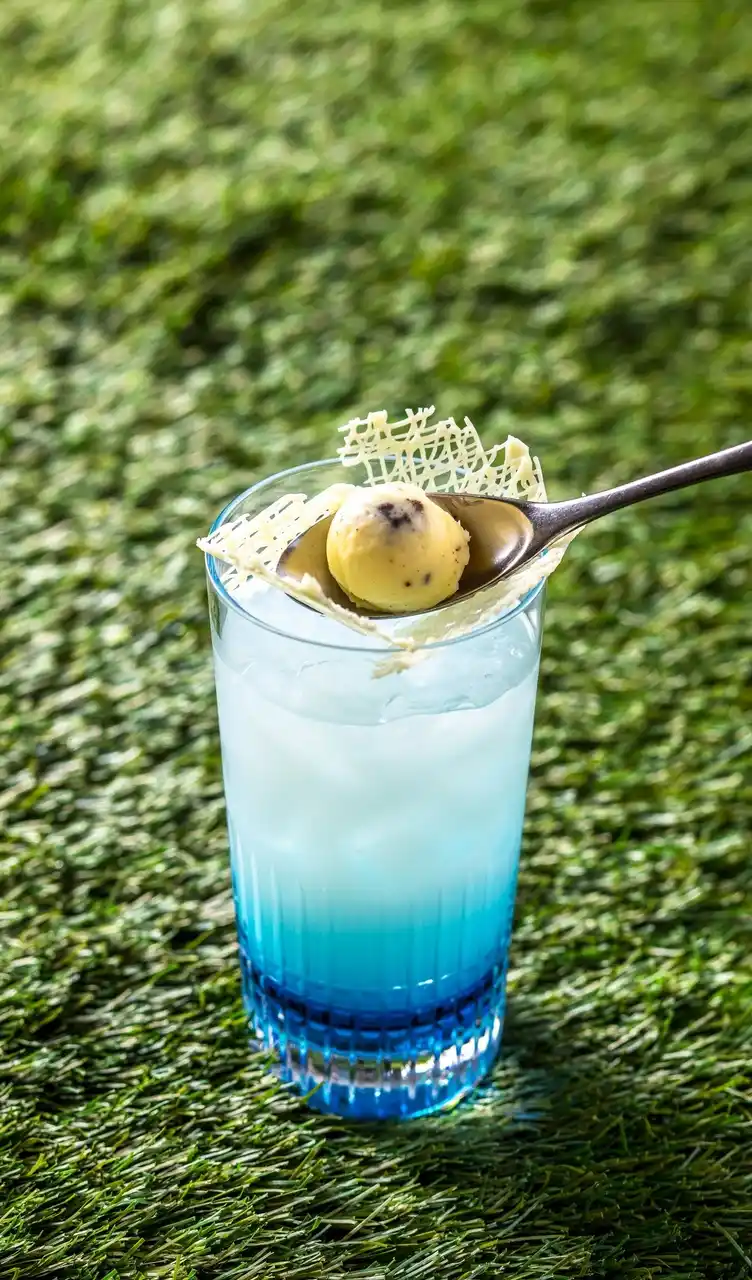期間中、ご利用時間90分間の内、各回開始より45分後にハーフタイム演出として限定デザート『マンゴーわらび餅』を提供します。さらに、サッカーユニフォームを着用して来店された小学生を対象に、オリジナルドリンク『ゴラッソ』をプレゼントします。スーパーゴールを意味するゴラッソは、ボールに見立てたバニラアイスクリームをネットの上から落とし、グラスに注がれたドリンクにゴールさせて完成します。仕上げの瞬間に生まれる高揚感と驚きを愉しめます。 |