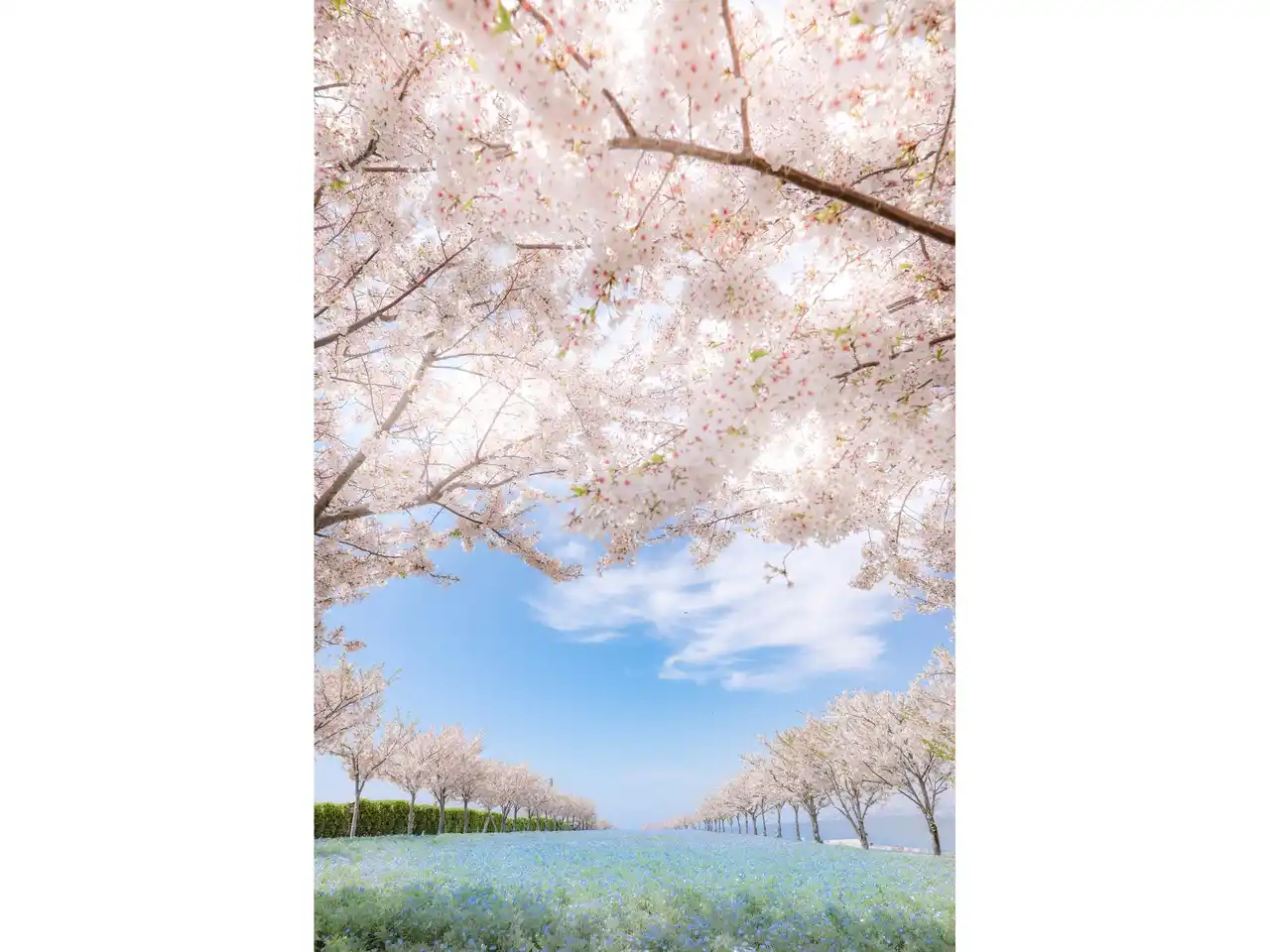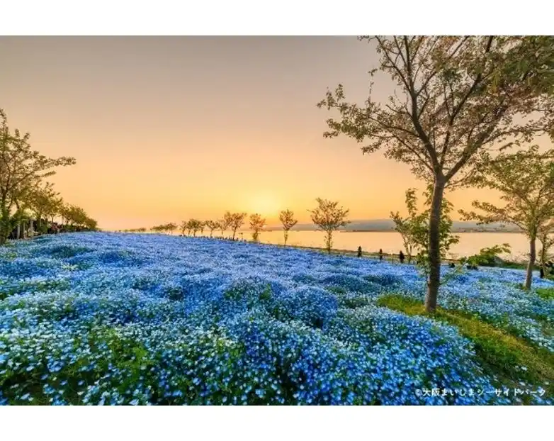 ネモフィラが見頃を迎える4月から5月にあわせて開催し、丘一面を青く染め上げるネモフィラと大阪湾の広大な海、青く澄み渡った空のハーモニーは、ぜひ写真に収めたい絶景です。 |