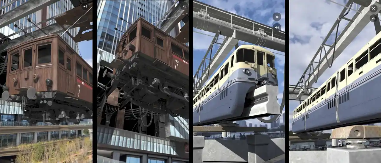 街の歴史と鉄道文化を象徴する「ナデ6110形(旧山手線車両)」および「東京モノレール100形」をXRで再現し、スマートフォンをかざすだけで3DCGでリアルに再現された大迫力のAR車両をお楽しみいただけます。 |