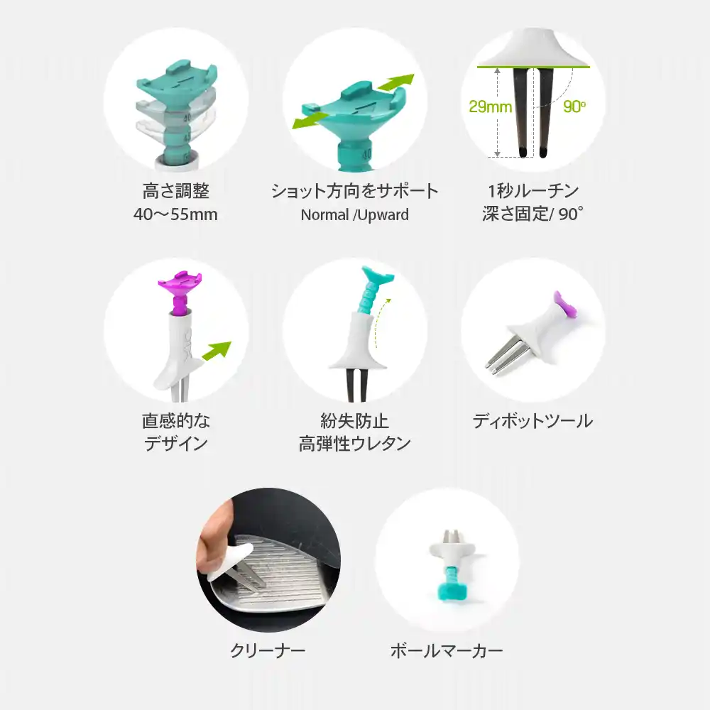 その他、機能を持たせることでティーがゴルフアイテムとして欠かせない存在にしています。 |