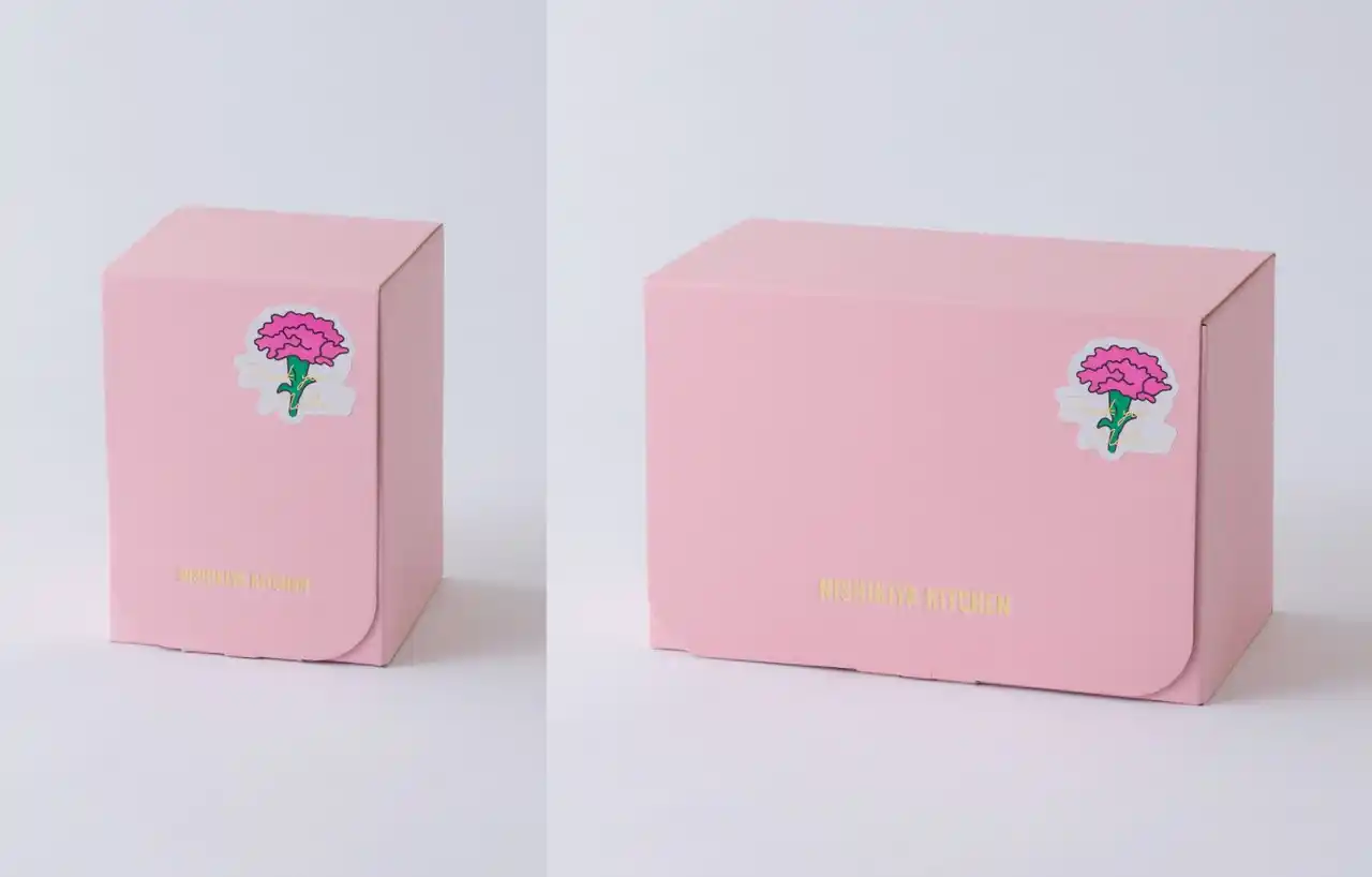 さらにニシキヤキッチン通販限定で、初の「ミニカーネーションブーケ」がついたギフトセットを100セット限定で販売。相手の住所を知らなくても贈れる「eギフト」にも対応しています。 |