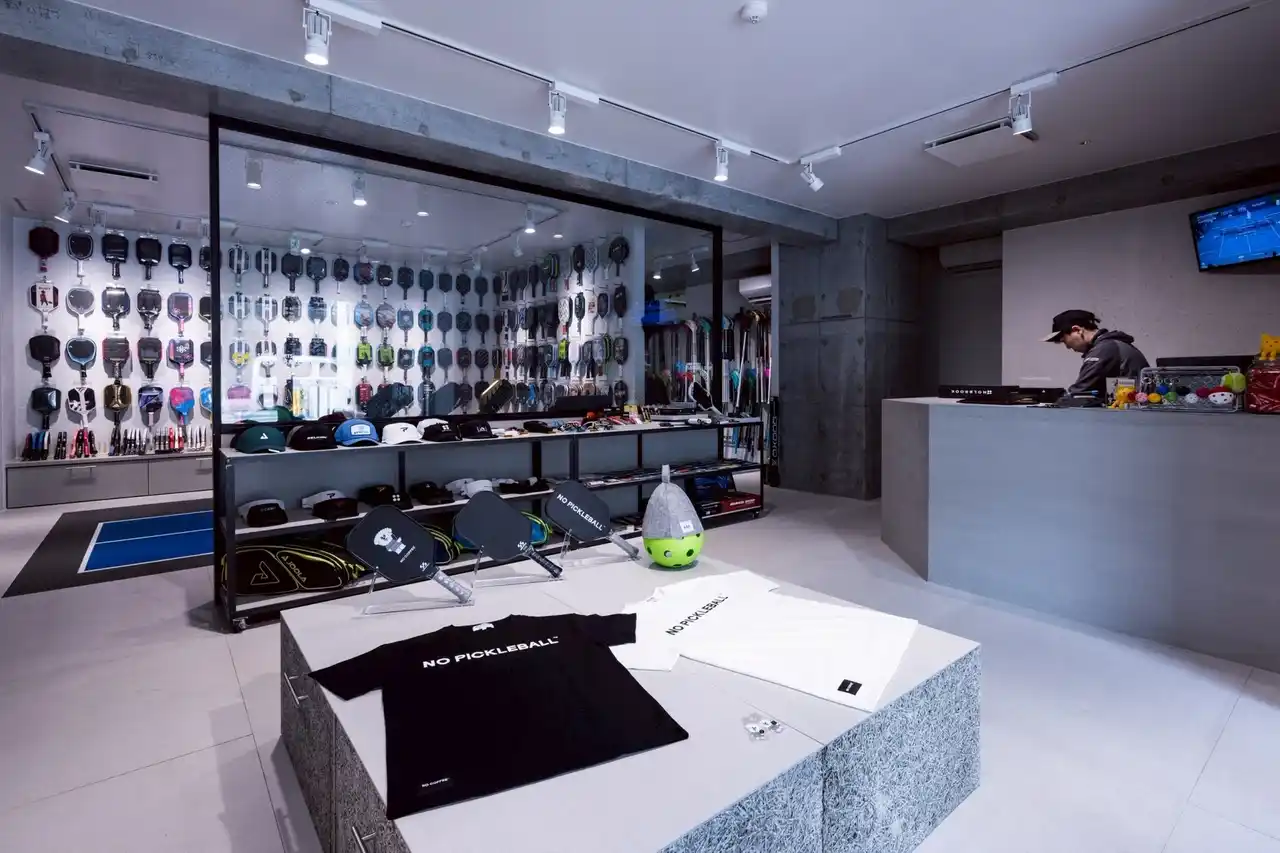 ピックルボール専門のアクセサリーや自社ブランドも展開。 |