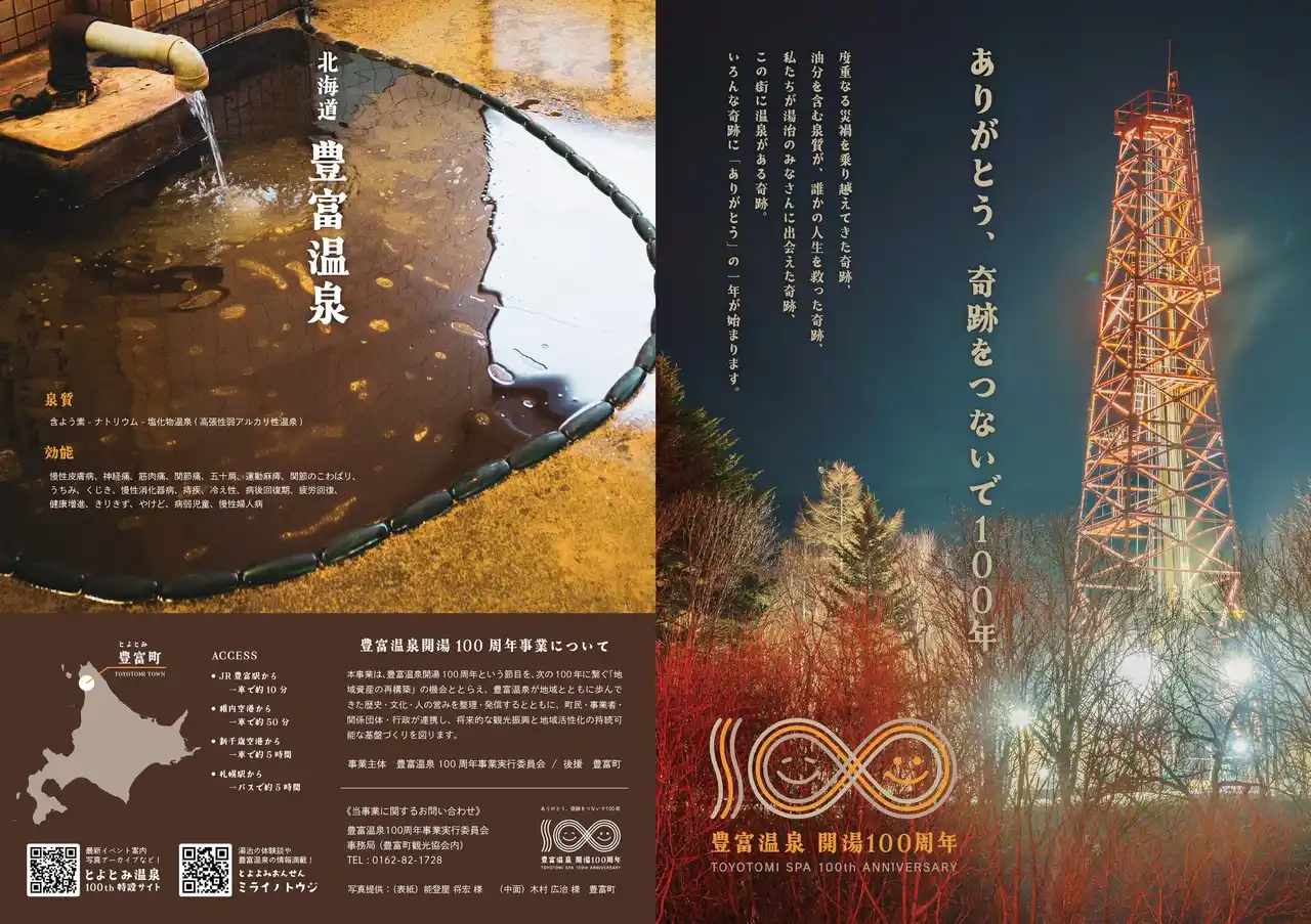 北海道豊富町にある「豊富温泉(とよとみ温泉)」は、2026年5月17日(日)をもちまして、開湯100周年を迎えます。 大正15年、石油試掘中に突如として湧き出したこの温泉は、世界でもわずか2箇所と言われる「天然の油分を含む泉質」を持ち、今日まで多くの皮膚疾患に悩む方々の“希望の湯”として歩んできました。この度、100年の歴史への感謝と、未来への継承を目的とした記念事業及びイベントを開催いたします。 |