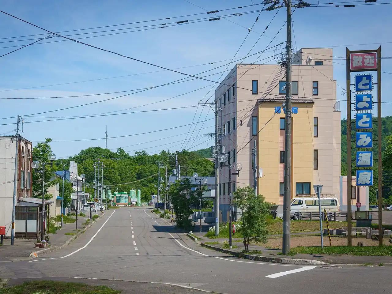 とよとみ温泉郷。中央奥に温泉井が見える。 |