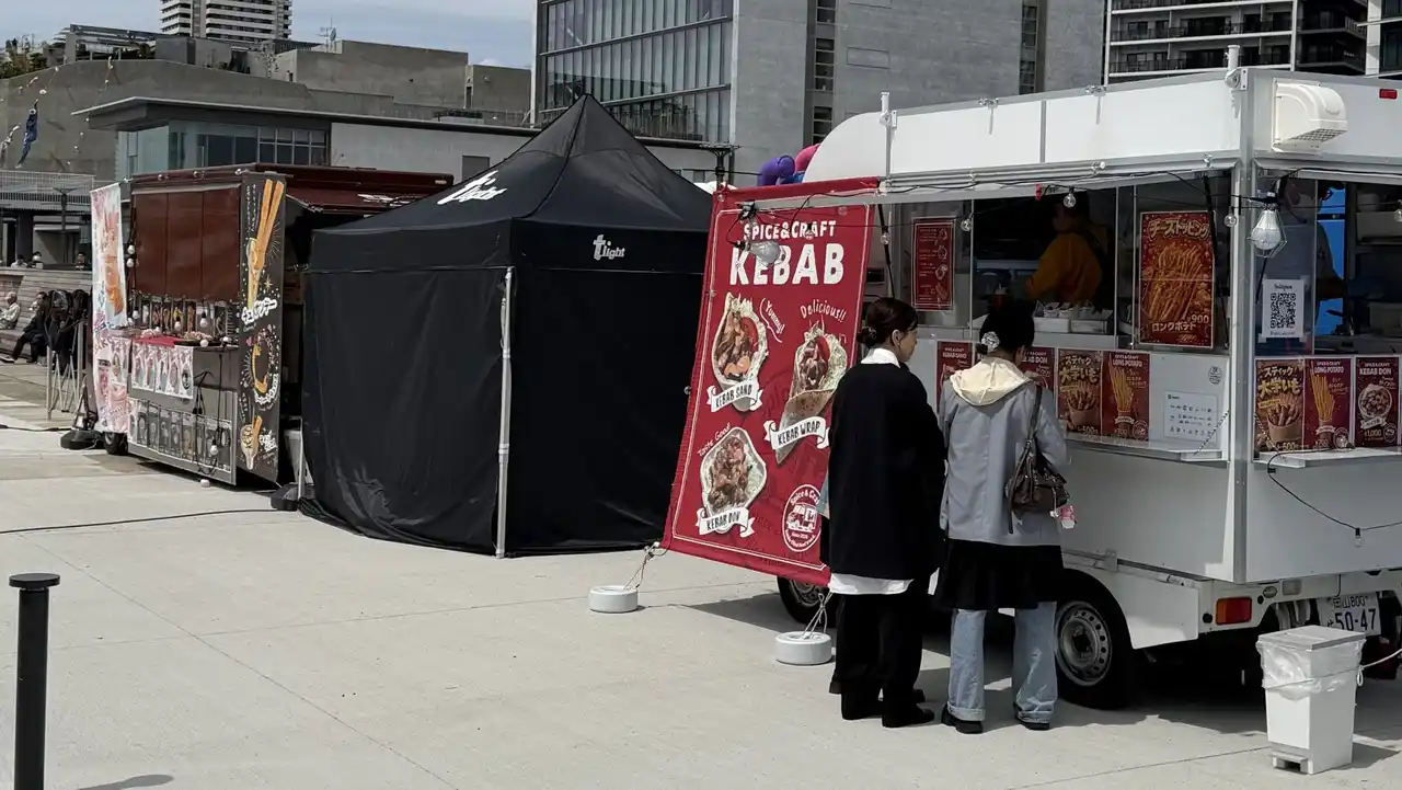 『KOBE BUBBLUMI 2026』開催期間中はさらにキッチンカーも臨時出店。21時頃まで営業しており、TOTTEI内の店舗が閉店後も、バブルミアートの点灯終了時間ギリギリまでドリンクやフードをお楽しみいただけます。 |