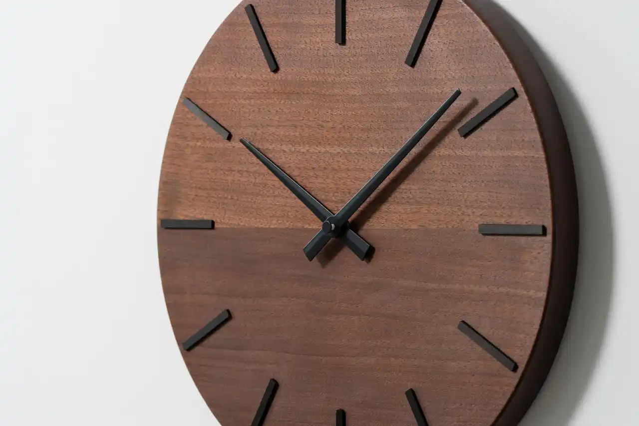 本時計の象徴となるのは、伝統技法「木象嵌(もくぞうがん)」で表現されたバーインデックスです。 |